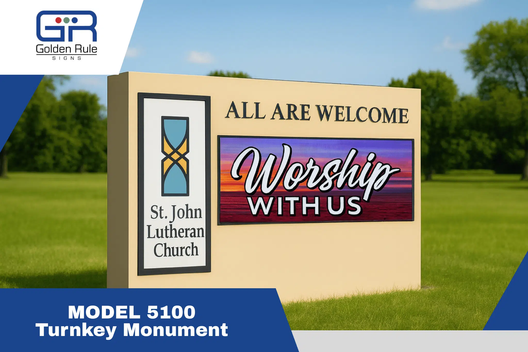The monuments shown here represent our standardized monument sign packages, a cohesive family of pre-designed models created for simplicity, efficiency, and lasting visual appeal. All while maintaining the quality, durability, and craftsmanship that define every Golden Rule Signs product.
